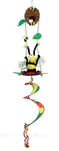 Weather Proof Polyester Fabric, Tear Resistant and Specially Coated for Indoor or OutdoorRead more Sunshine Honey Bumble Bee Swinging on a Flower Under Bee Hive - Bright & Coloful Twister - Spinner - Windsock Hanging Garden Decorative Scuplture Decor 46 Inches Tall