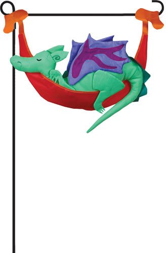 This inflatable garden charm has a beautiful 3-D shape not found on other wind ornaments. Made with high quality suntex 210D polyester fabric with fade-resistant coating and tight satin applique stitching. Soft foam and weighted beads are meticulously added in key areas for a plush feel and extra wind stability. Easy to inflate by mouth or optional pump. This fun-loving 3-D garden charm will turn heads as it sways gently into the wind. Flag pole not included. Available in fire dragon theme. Measures 16-inch width by 18-inch length.
