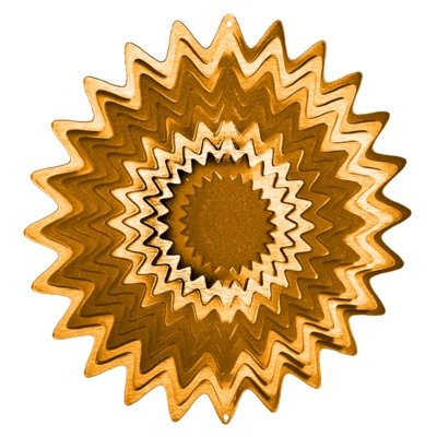 1290-12-3 Size: Large, Color: Copper The classic collection wind spinners by Iron Stop spin in the slightest breeze catching the eye with it's mesmerizing light effects. A beautiful addition to any lawn or garden and enjoyment for all. Features: -Sparkling powder coating. -Made of 20 gauge steel and powder coated for durability. -Beautiful splash design. -Brilliant light effects. -For indoor or outdoor. -Weather resistant. -Made in United States. -1 Month warranty. Specifications: -Small dimensions: 6" H x 6" W x 1.5" D. -Large dimensions: 12" H x 12" W x 2" D.