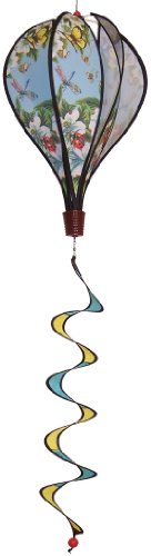 Garden bugs animated kinetic hot air balloon hanging spinners have great visual appeal as they rotate in the wind. The graphic actually appears to move as it spins. Enjoy color in motion as the heavy duty swivel lets them spin endlessly. The balloon is 16-inch high and has a 12-inch diameter. It comes with an attached 26-inch curlie tail.